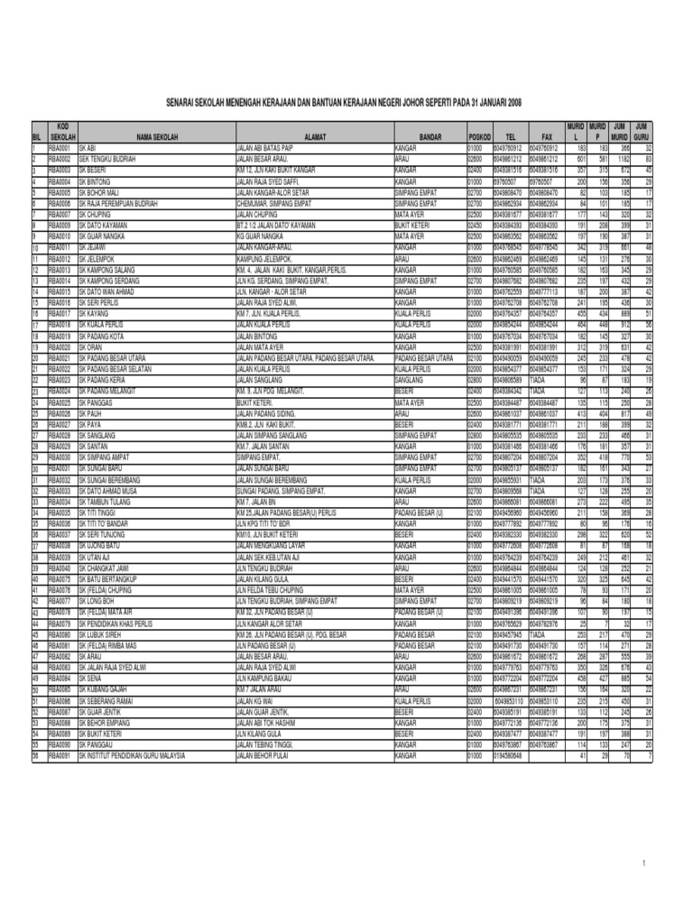 Kod Negeri Ppd Nama Sekolah Alamat Bandar Poskod Telefon