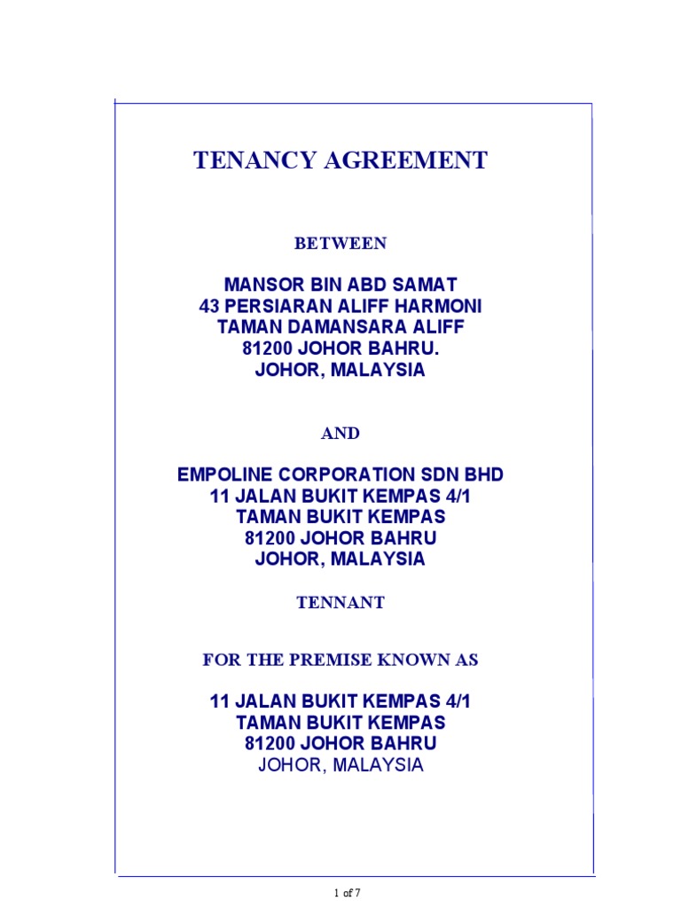 Contoh Tenancy Agreement Malaysia Arif Hussin
