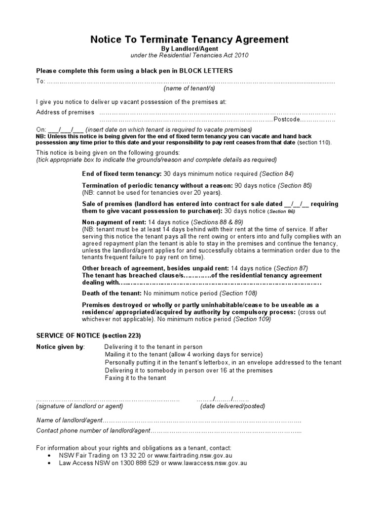 Sample Notice To Terminate Tenancy Agreement